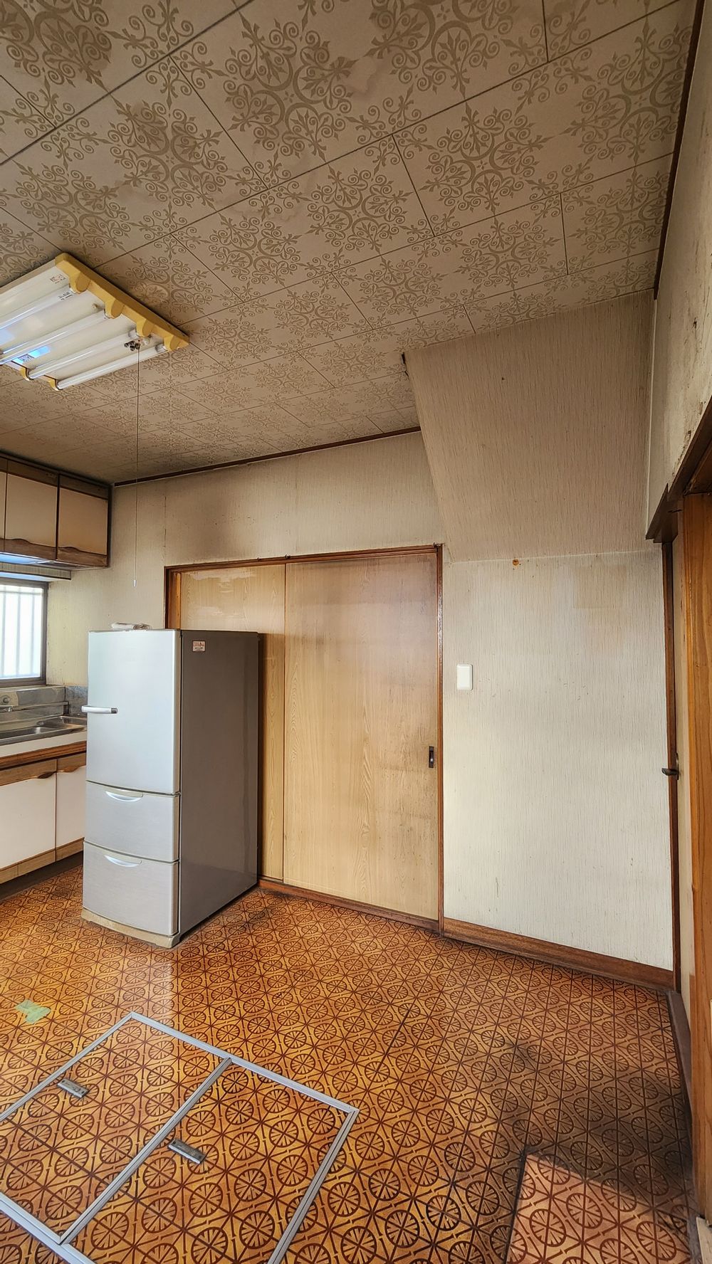 和室天井を竿縁天井に。床をフローリングにしサッシをシャッター付きに。